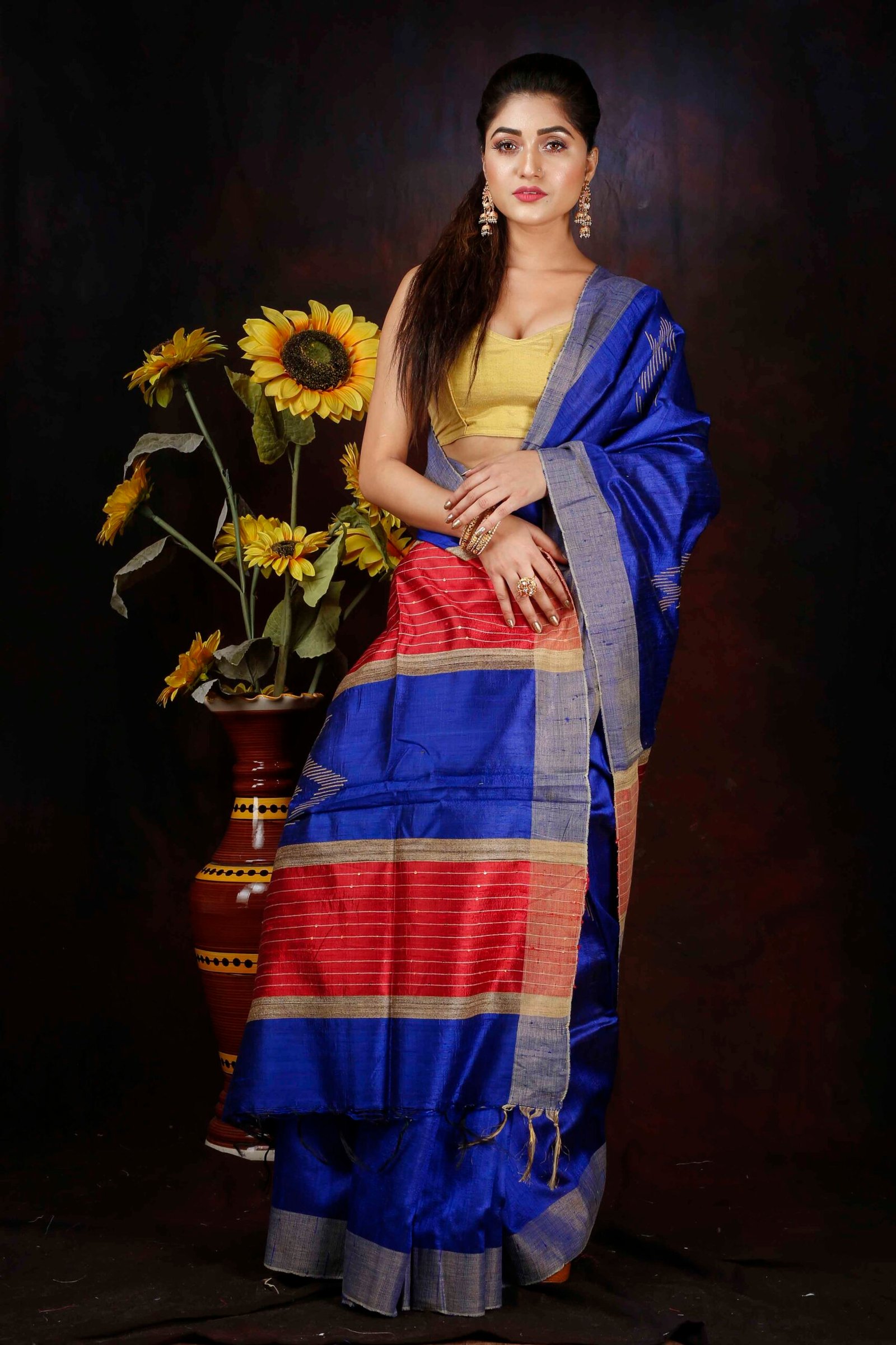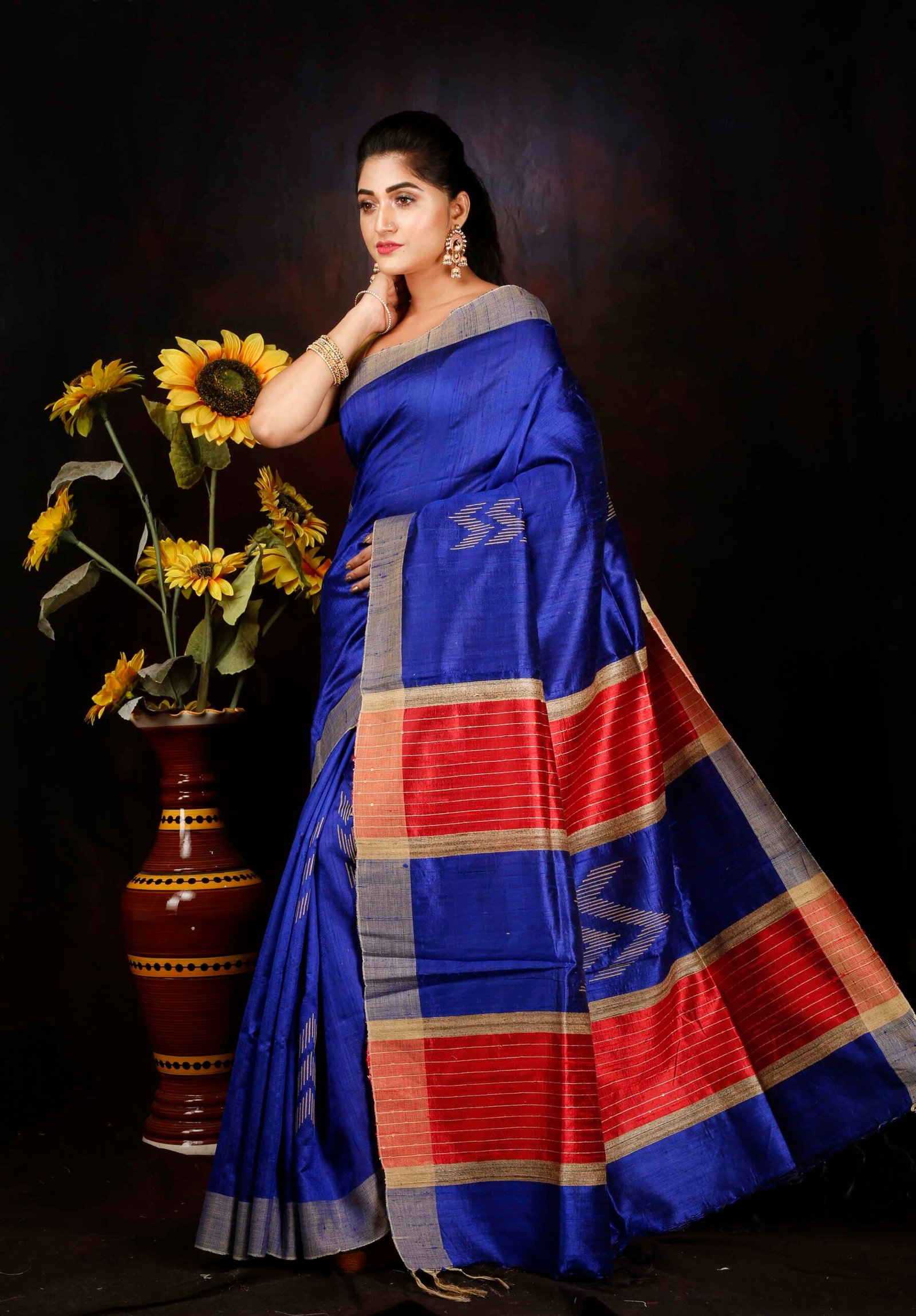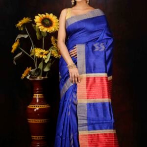 Be the first to review “Royale Blue with Red Contrast Dupion Silk Saree”